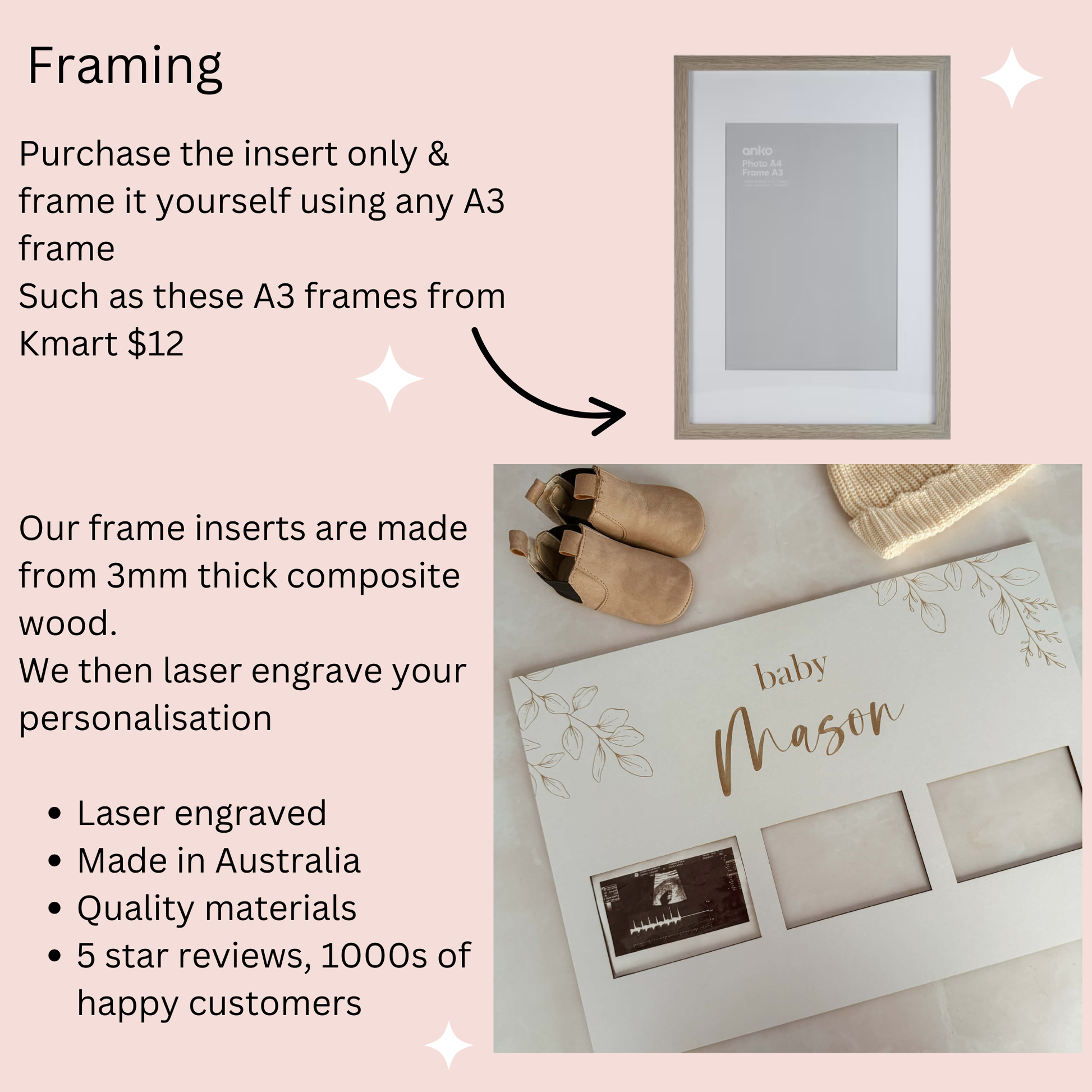 Purchase the insert only & frame it using any A3 size frame you like! We recommend the $12 frames from Kmart which come in oak, white or black.