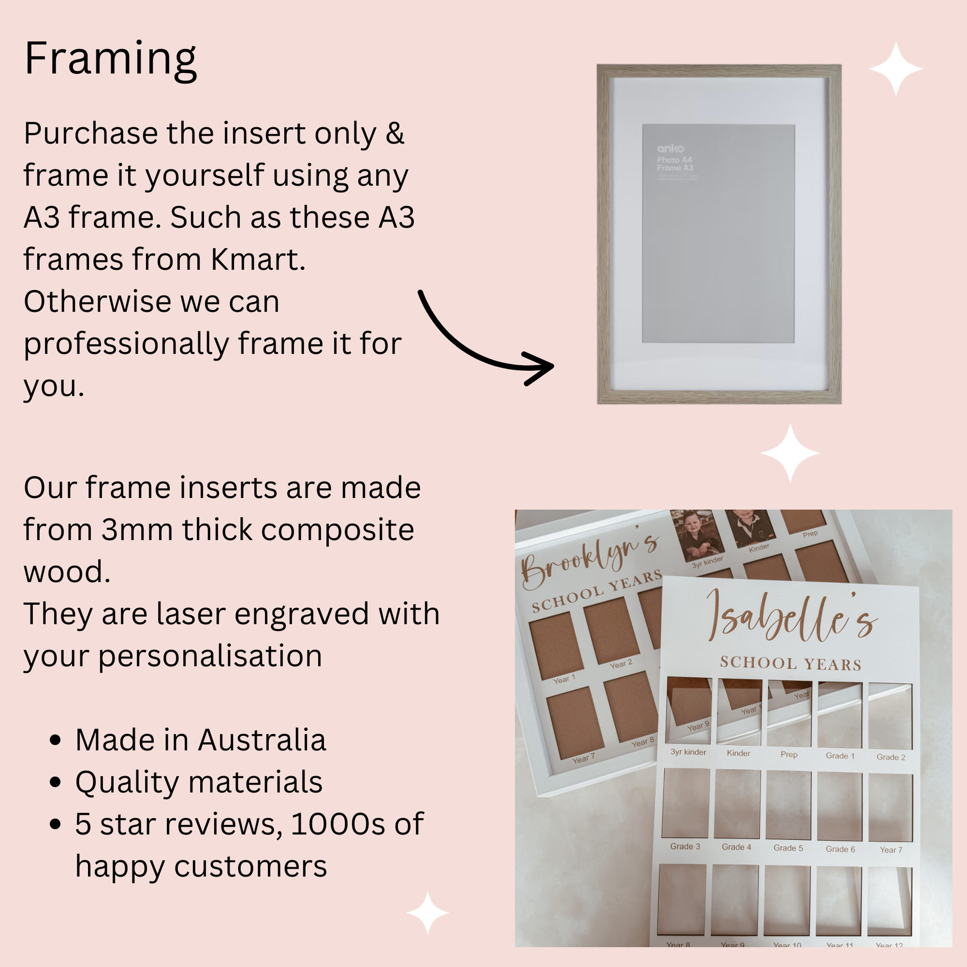 Purchase the insert only & frame it using any A3 size frame you like! We recommend the $12 frames from Kmart which come in oak, white or black.