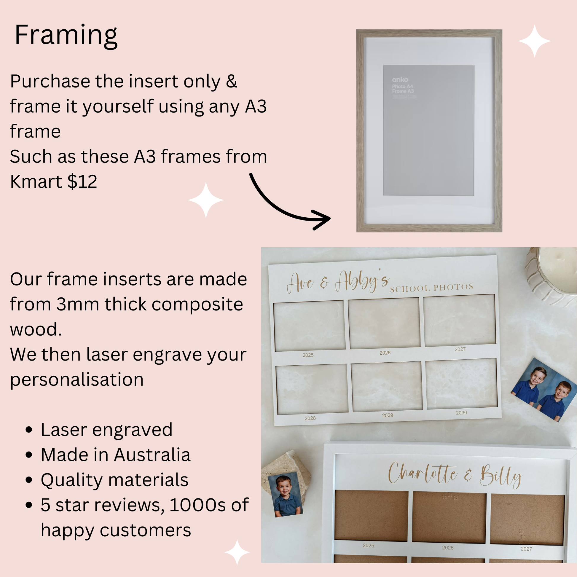 Purchase the insert only & frame it using any A3 size frame you like! We recommend the $12 frames from Kmart which come in oak, white or black.